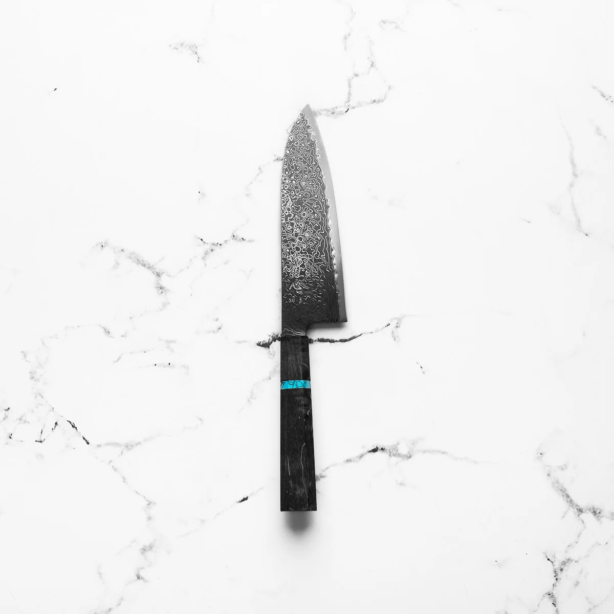 Hatsukokoro Ryuhyo Kurozome SG2 Damascus Santoku 180mm - Maple Turquoise