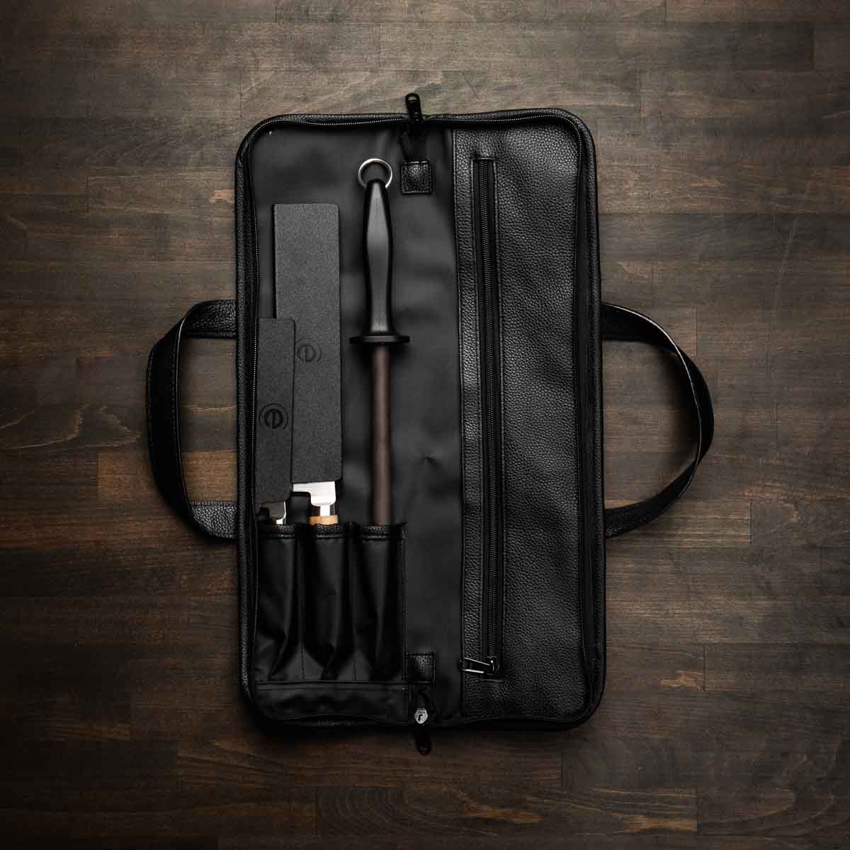 Bundle contains Gyuto 200mm, Petty 120m, Edge Guards, Honing Rod & Porter 3 Pocket Knife Bag