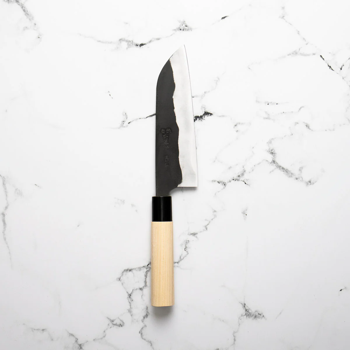 | Blade Material: | Shirogami Carbon Steel Core + Soft Iron Kurouchi Clad |