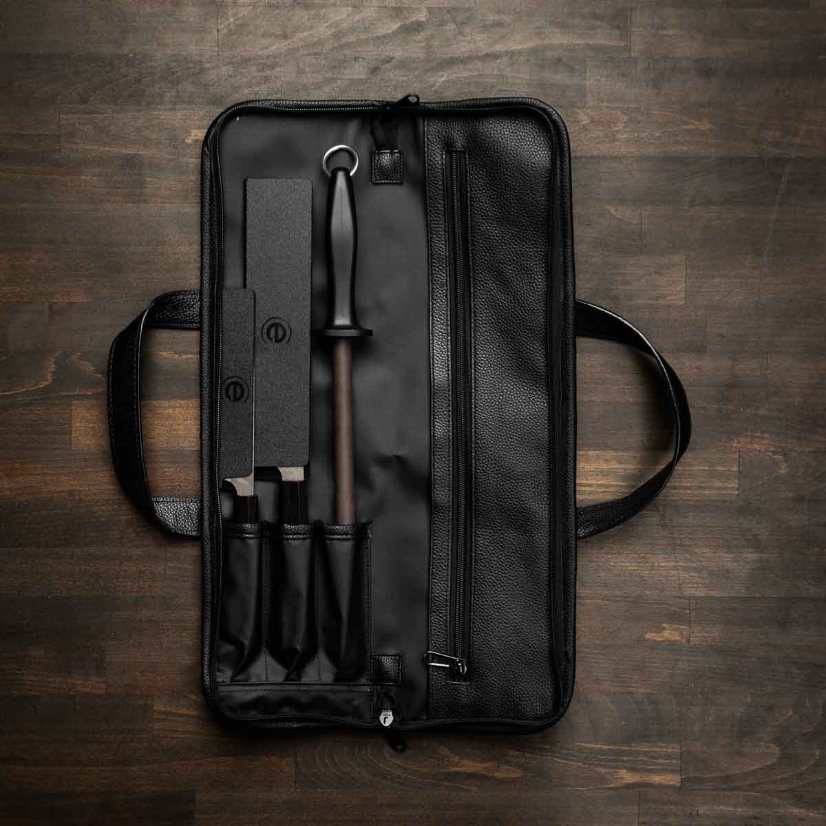Bundle contains Gyuto 210mm, Petty 150m, Edge Guards, Honing Rod & Porter 3 Pocket Knife Bag