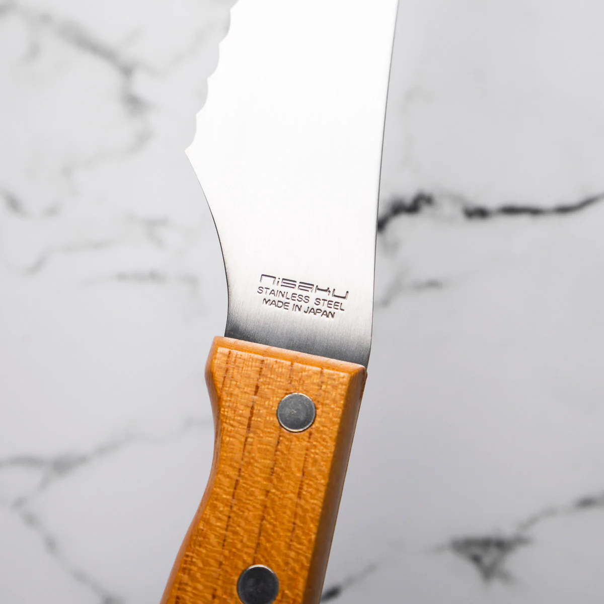 A classy, low-cost serrated bread knife made in Japan. The 27cm length makes for easy cutting of all types of bread.
